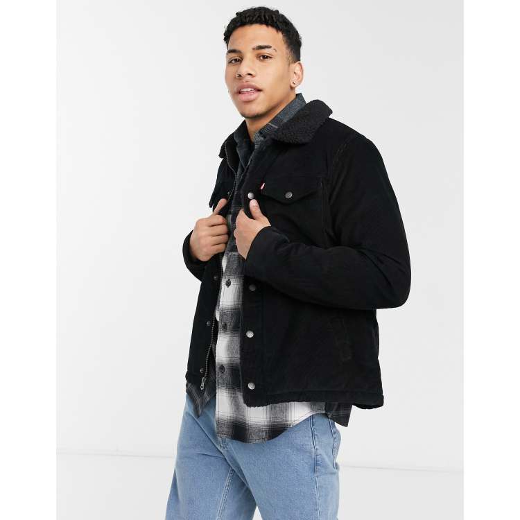 Levi s corduroy military jacket sherpa lining collar in black ASOS Very well made.
