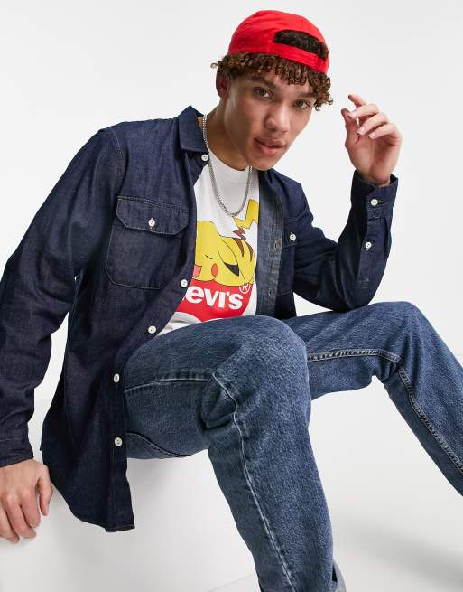 Levi s jackson worker lightweight cotton hemp shirt in dark indigo rinse wash Very well made.