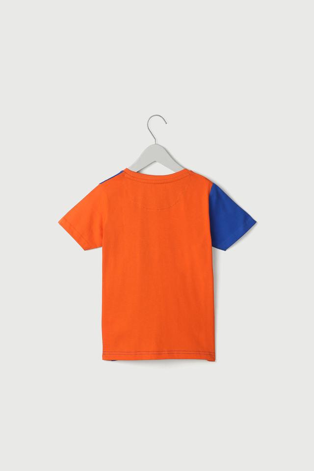 Buy STOP Orange Color Block Cotton Round Neck Boys T Shirt Very well made.