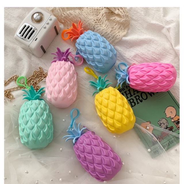 SHINE Pineapple coin purse Silicone wallet Bag Soft Cute Cartoon Zipper womenWallets earphone Keybag Very well made.