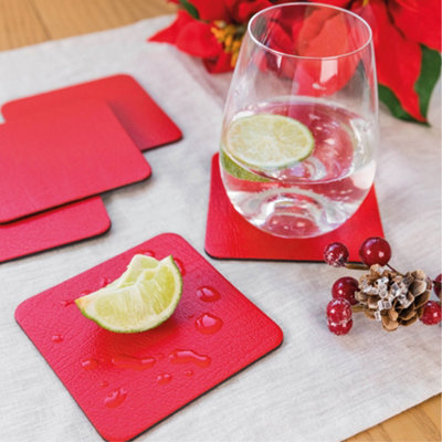 Set of 6 London Red Recycled Leather Placemats and 6 Leather Coasters Very well made.