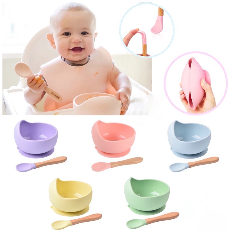 HOTBEST Silicone Baby Feeding Set Waterproof Spoon Non Slip Feedings Silicone Bowl Tableware Baby Products Baby Plate Very well made.