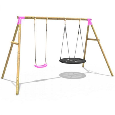 Rebo Wooden Garden Swing Set with 2 Swings Venus Pink DIY at B Q Very well made.