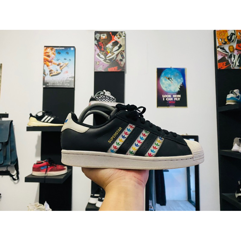 NEW Adidas Superstar Originals GX2716 Black Multi Logo Mens 12.5 Very well made.