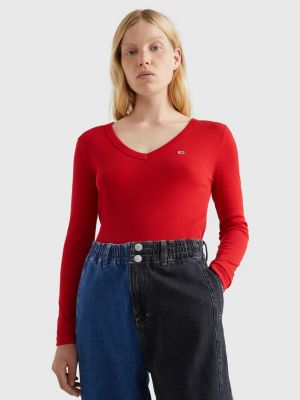 Essential Cropped Ribbed Long Sleeve T Shirt Red Tommy Hilfiger Very well made.