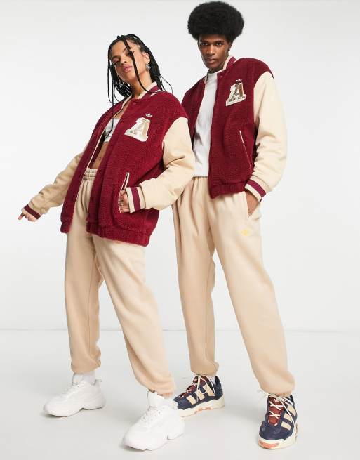 adidas Originals Preppy Varsity Veste Teddy coupe boyfriend Bordeaux et beige Very well made.