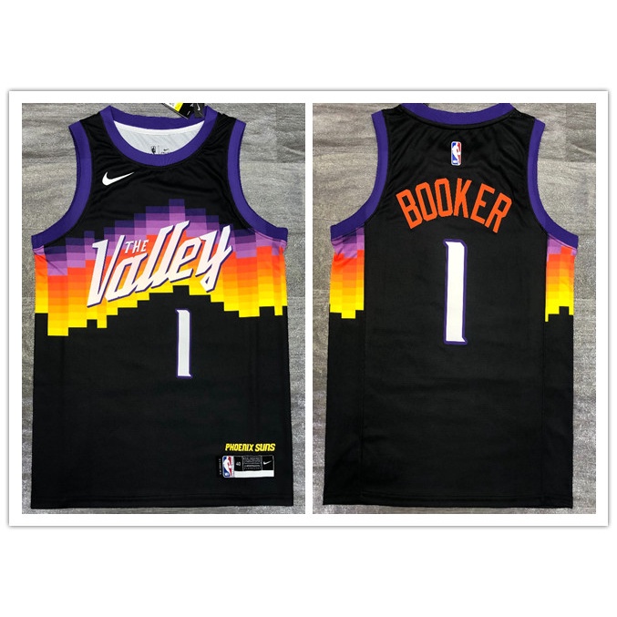 hot pressed nba Phoenix Suns No.1 Devin Booker black 2021 Very well made.