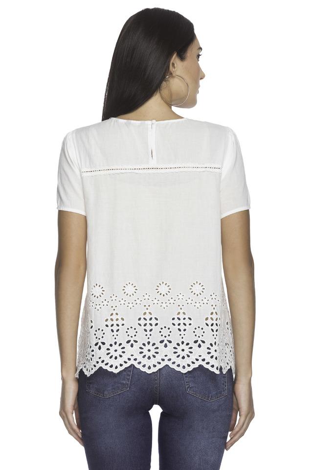 Womens Round Neck Solid Eyelet Top Very well made.