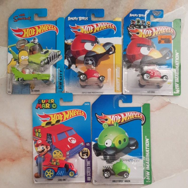 Hot Wheels Angry Birds Red Bird Minion Super Mario Cool One Simpsons The Homer Nick Fury Ultra Rage Delorean Dmc BTTF Very well made.