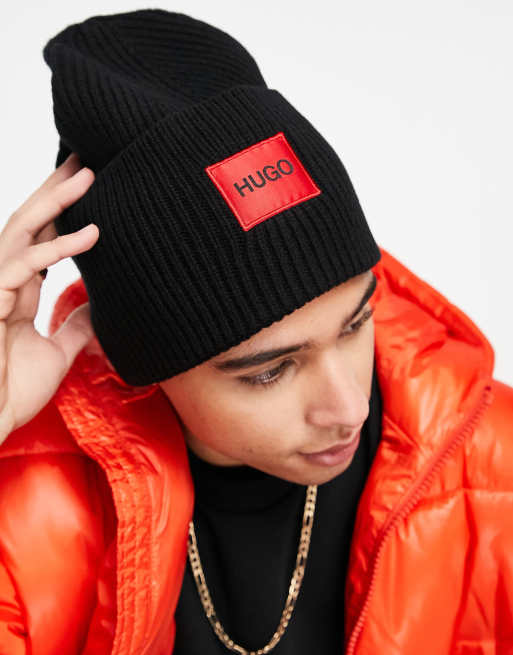 HUGO Xaff contrast box logo beanie in black ASOS Very well made.
