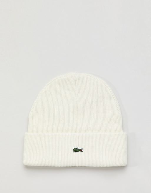 Lacoste L VE Beanie met tekstlogo in wit Very well made.